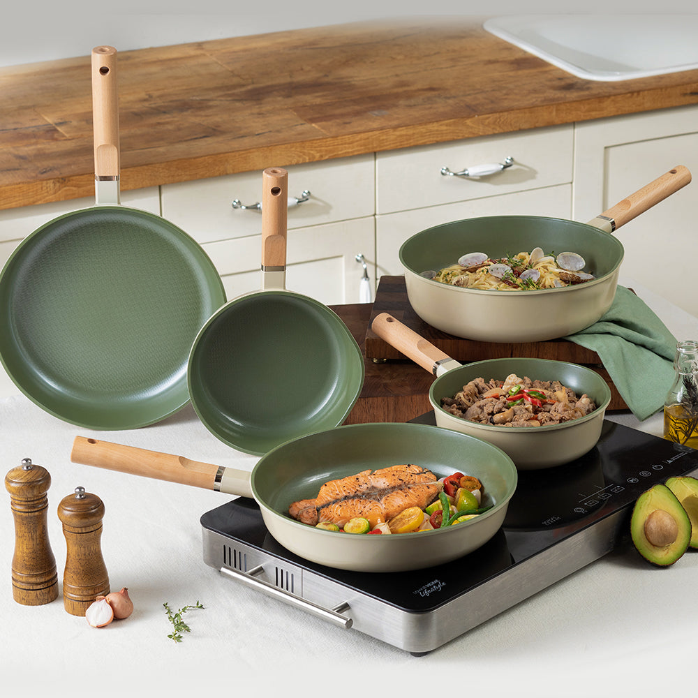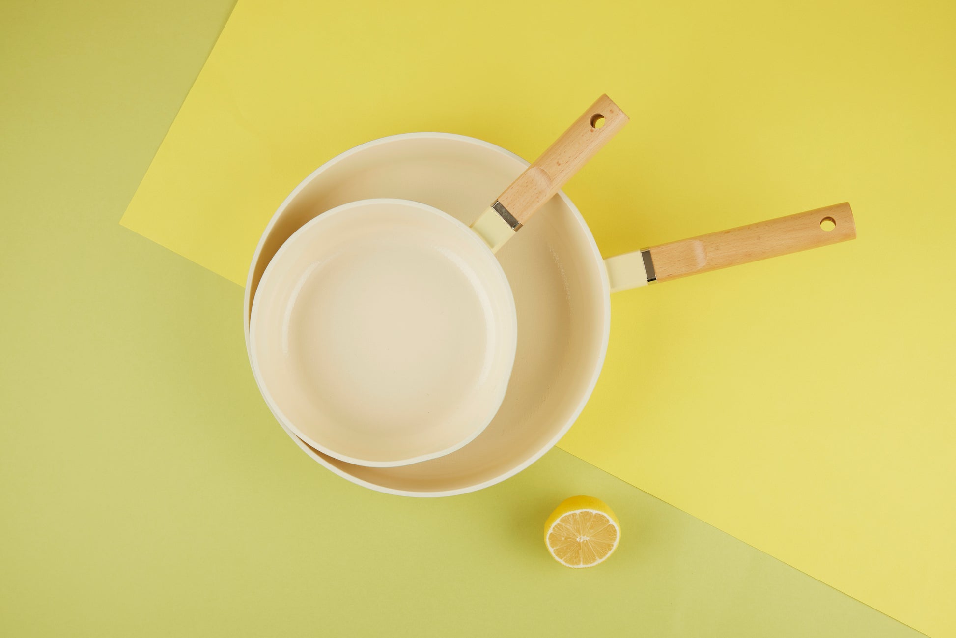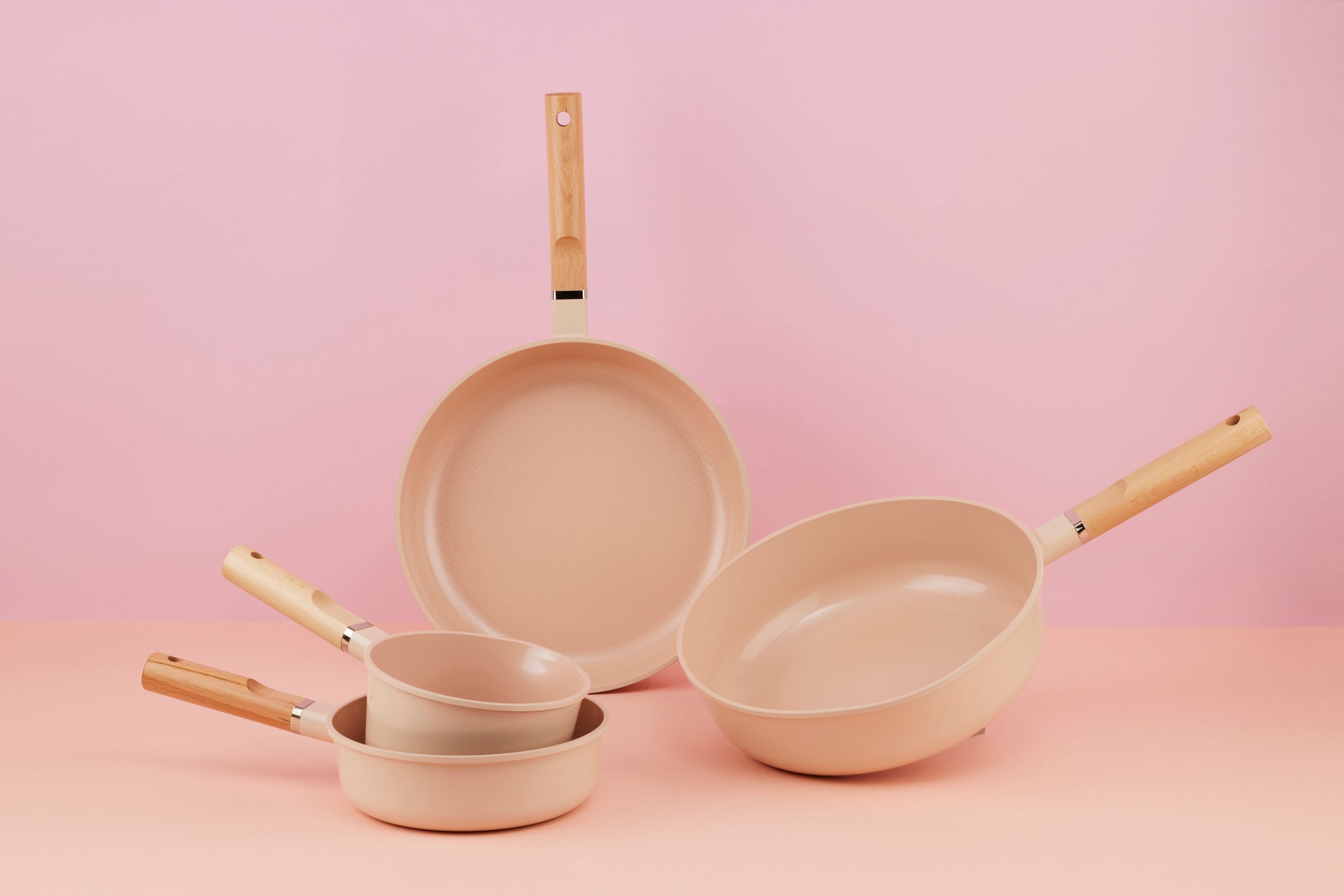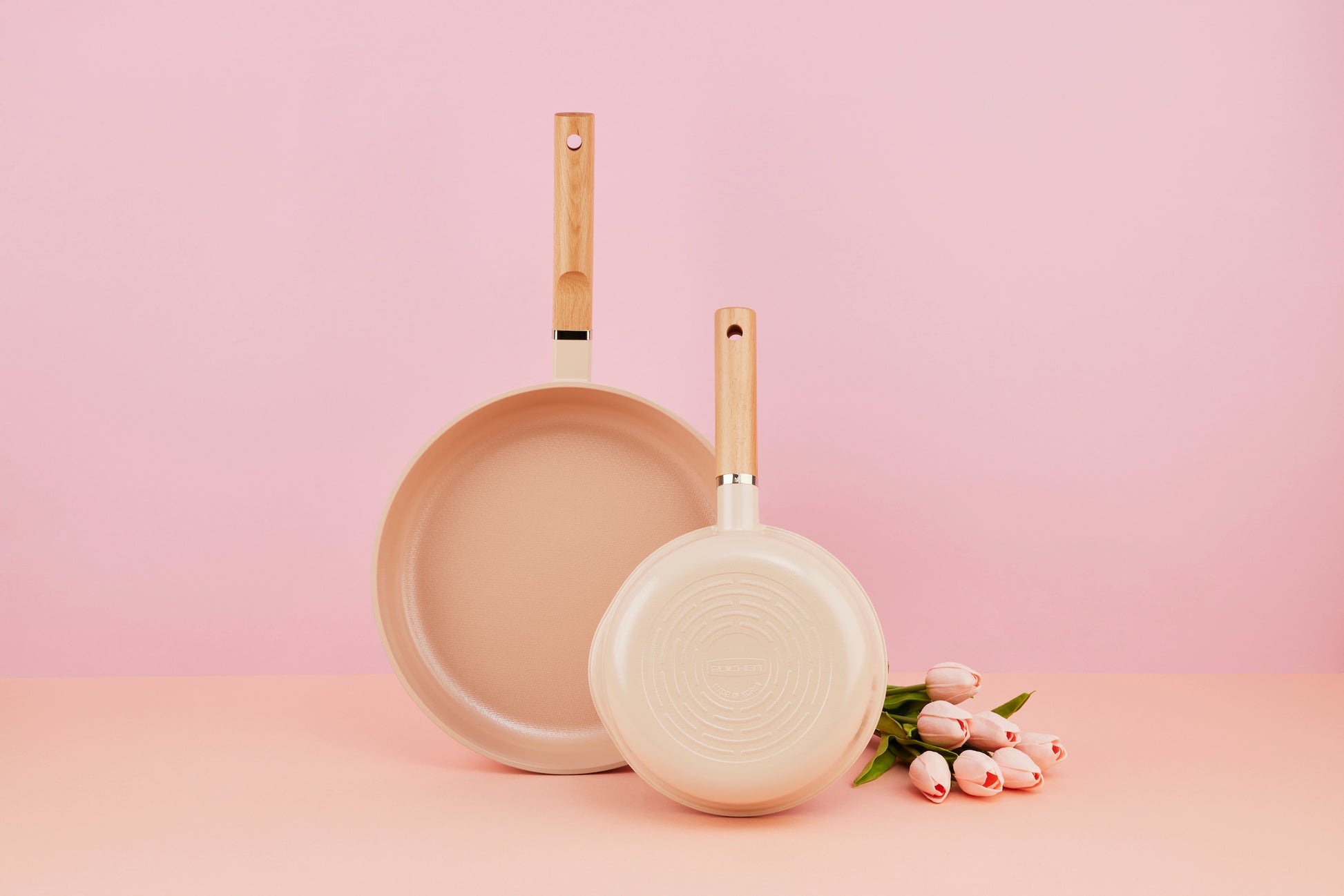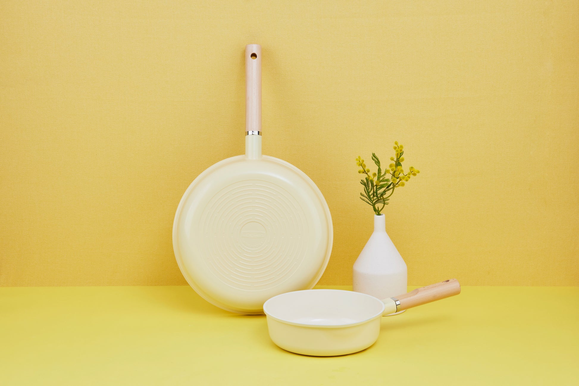 【ノンスティックセラミックフライパン】はAVOCADO GREEN、CANDY PINK、MARSH YELLOW、BEIGEの4色をご用意しました。