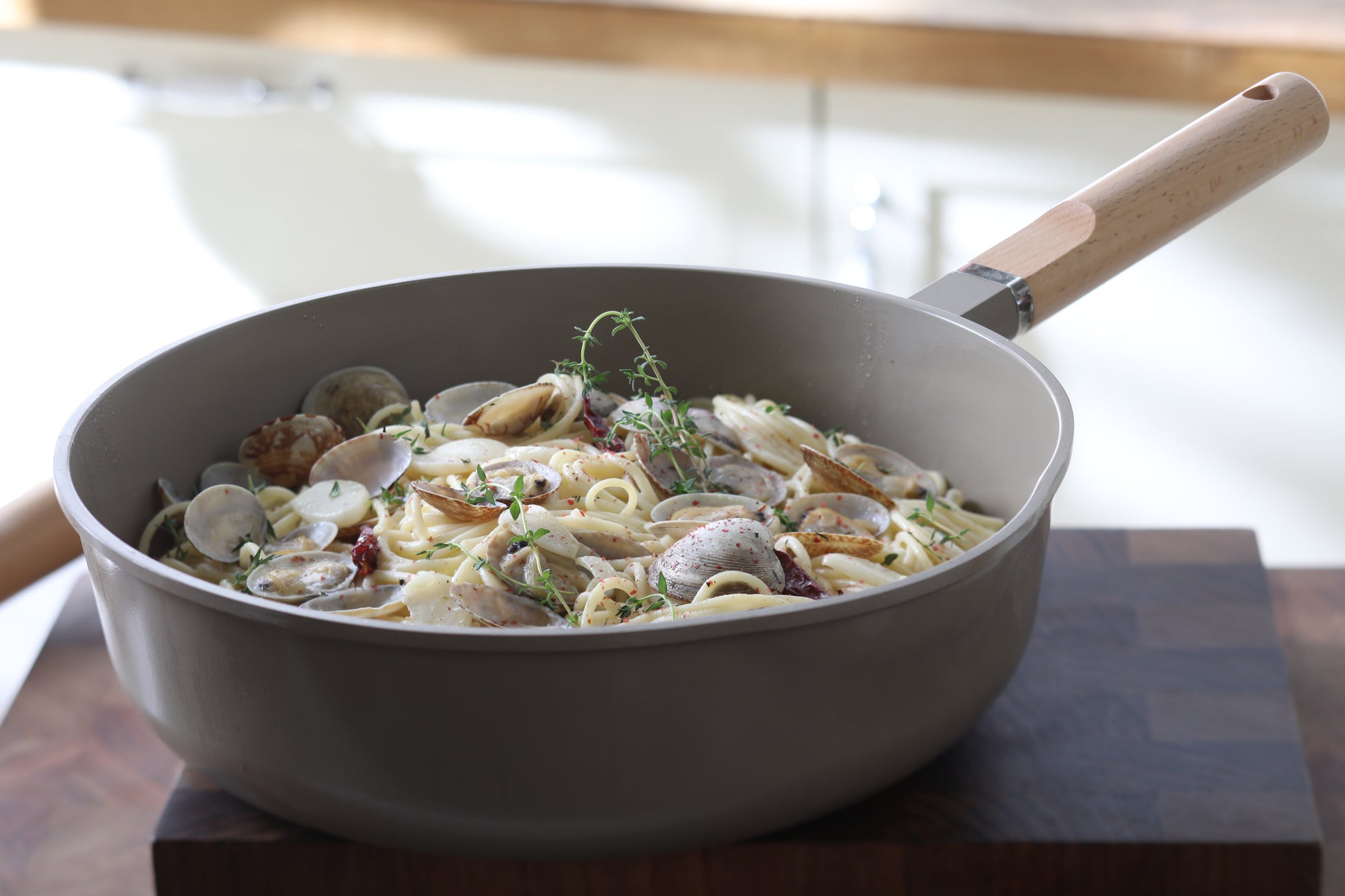 うどんやシチューなどの汁物から、もちろん炒め物までこれ一つで対応。この深型タイプが1つあれば、大きな鍋はもう必要ありません。